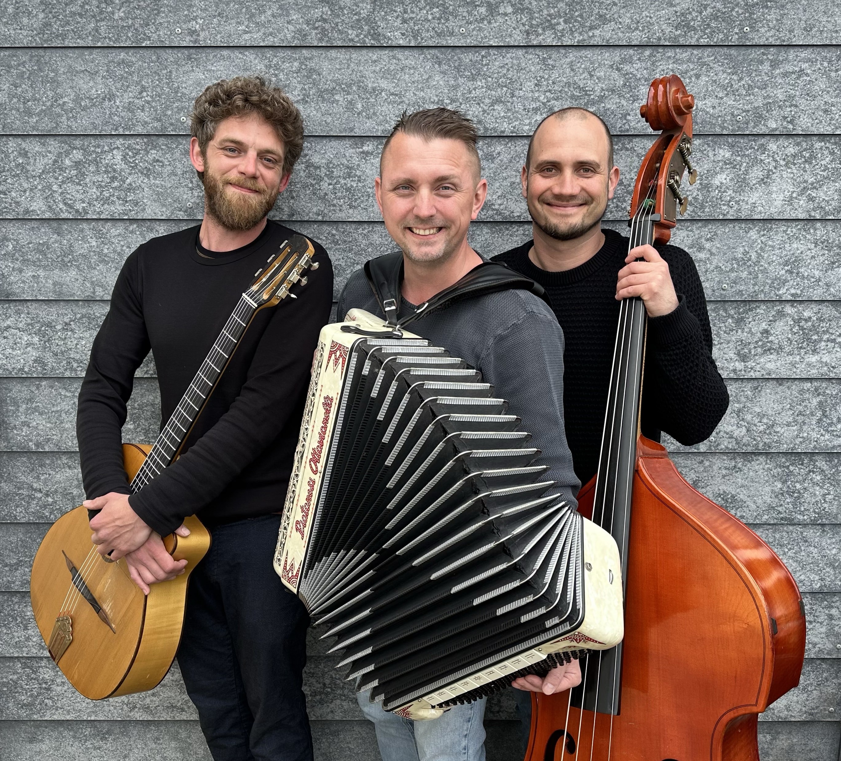 Udover Kristian Rusbjerg på harmonika, er det Mathias Søndergaard Kristensen på guitare manouche og Jonas Kongsted Frederiksen på kontrabas og violin, der udgør trioen.